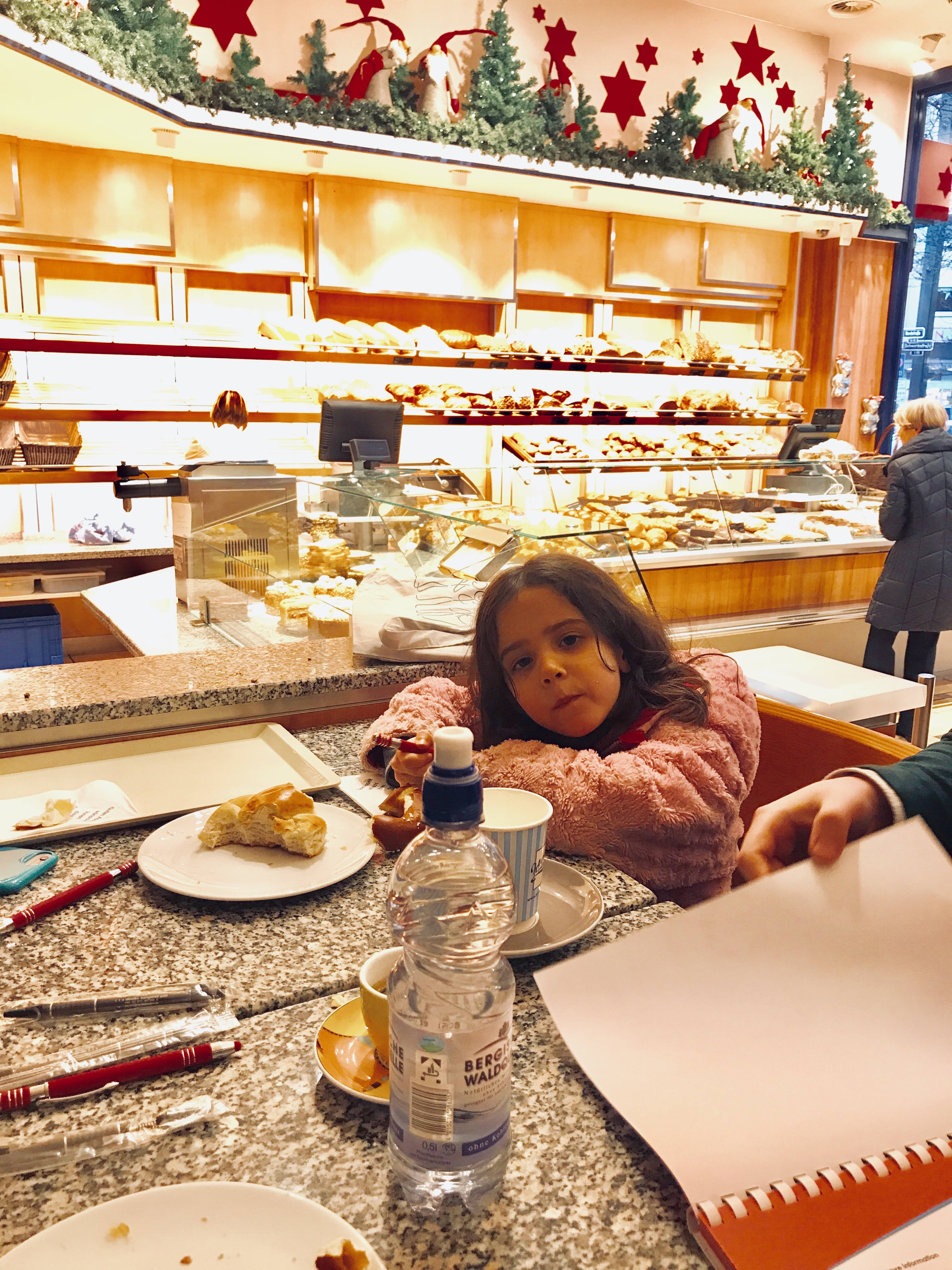 That wasn’t everything from today. We had a tour guide, Mattias, show us a little of the city. The girls were not so impressed, but it was good to see it from a local’s point of view. It was hard to get pictures from the back seat of the car, but you get the idea. We then went to a bakery for croissants, pretzels, and coffee – (I even ordered a water in German! Score one for me!).